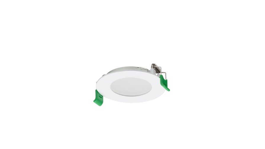 Aluminium die-cast, White, Signal white (RAL9003), Power supply unit external (On/Off), All-in, Multi Color Temperature, 680 lm, 700 lm, 6.5 W, 110 lm/W, 105 lm/W, 3000 K, 4000 K, (0.43,0.40) SDCM<3; (0.38,0.38) SDCM<3, Beam angle 90°, Symmetrical, Textured, Polycarbonate, IP20/44 | Finger-protected; wire-protected, splash-proof, IK03 | 0.3 J, Safety class II, Push-in connector 6-pole, Emergency lighting ready (through compatible battery kit accessory)